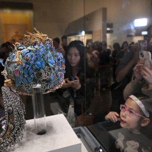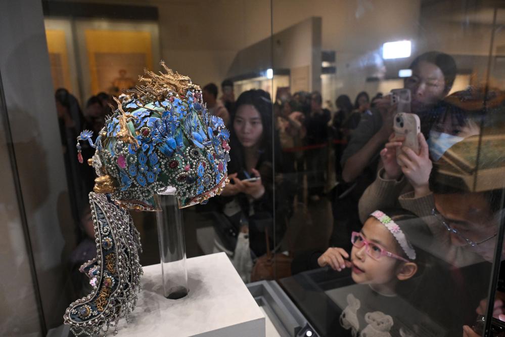 3月25日,觀眾在中國國家博物館觀看明孝端皇后鳳冠。新華社記者 金良快 攝