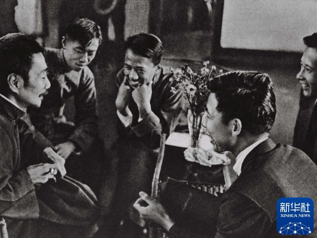 1936年10月8日,魯迅在上海八仙橋青年會參觀第二回全國木刻展覽會時,與青年木刻工作者交談。
