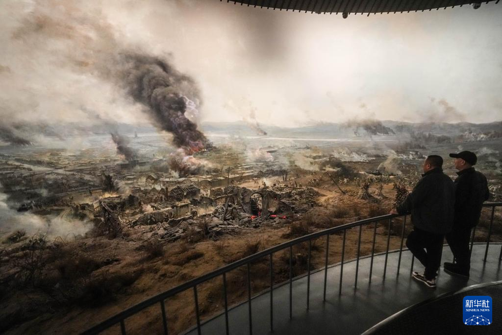 4月1日,參觀者在遼沈戰役紀念館內觀看全景畫《攻克錦州》。 新華社記者潘昱龍 攝