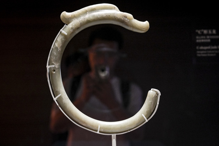 故宮博物院藏“C”形玉龍亮相上博展廳。新華每日電訊記者陳浩明 攝