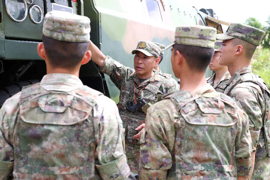 ↑何賢達(中)為新號手講解裝備操作技巧。程李航 攝