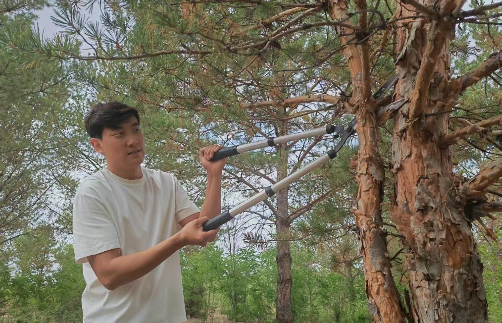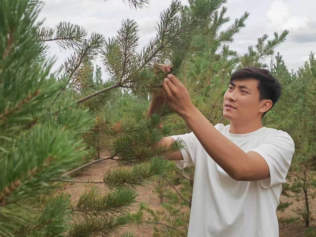 2017年,在爺爺的帶領下,石健陽正式投身植綠事業?!斑^去沙害嚴重,老一輩治沙人最迫切的是要定住風沙,讓地面先綠起來,所以當時的樹種主要是生長快的楊樹?!笔£栒f,“幾十年過去,楊樹林老化嚴重,出現大面積枯死的情況。我們現在陸續對老化的林地進行樹種更換,補種四季常青、生命周期更長的樟子松,目前已經補種了5萬畝?!?/p>