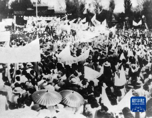 南京市民舉行抗日救亡大會,反對蔣介石的不抵抗政策,要求全國一致對外。