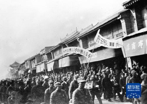 這是西安各界人民示威游行,擁護中國共產黨的抗日救國主張,要求國民黨政府停止內戰,一致抗日。