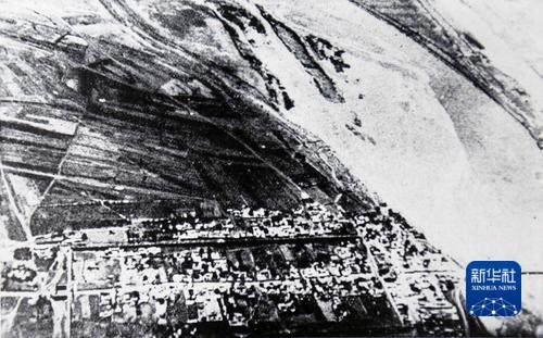 這是日軍空中拍攝的盧溝橋及宛平縣城圖(右斜上方為永定河)。