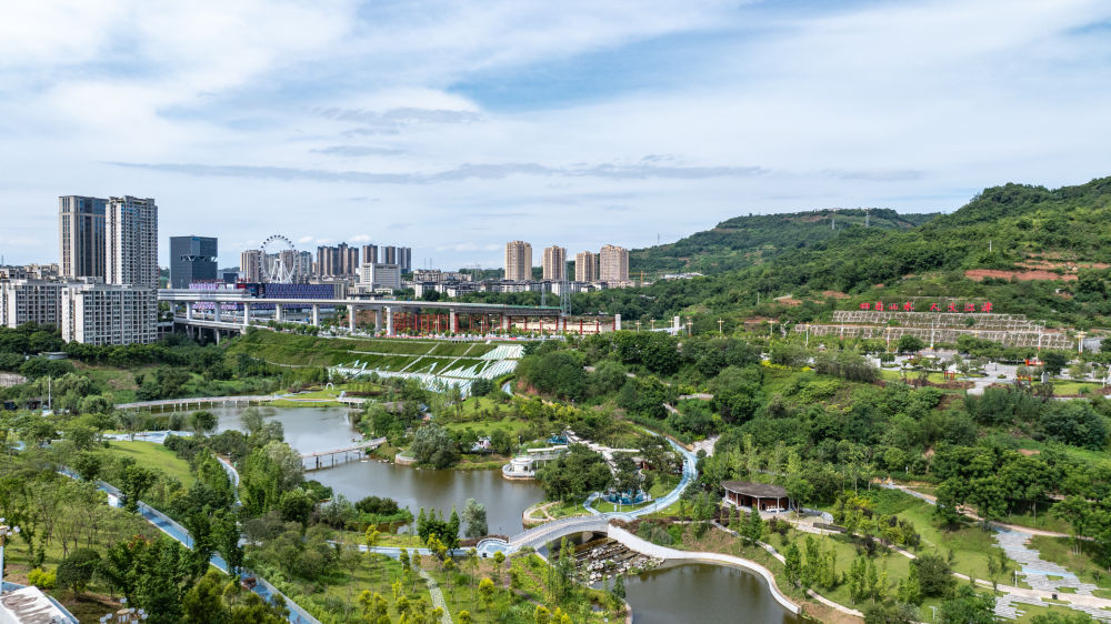 這是7月3日拍攝的重慶市江津區城市公園風光(無人機照片)。新華社記者 黃偉 攝