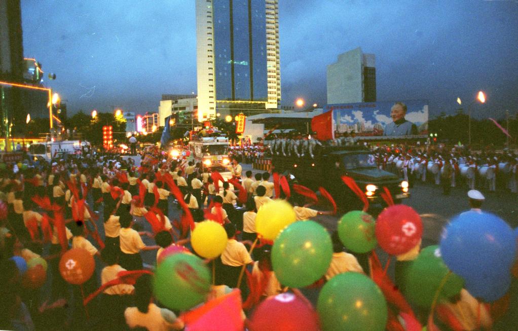 1997年香港回歸祖國的時候,我在深圳采訪。深圳的大街小巷,燈火通明,上百萬人上街慶祝香港回歸。市民舉著氣球,夾道歡迎解放軍進駐香港。我懷著激動的心情,把這些歡樂的場景都記錄在鏡頭里。