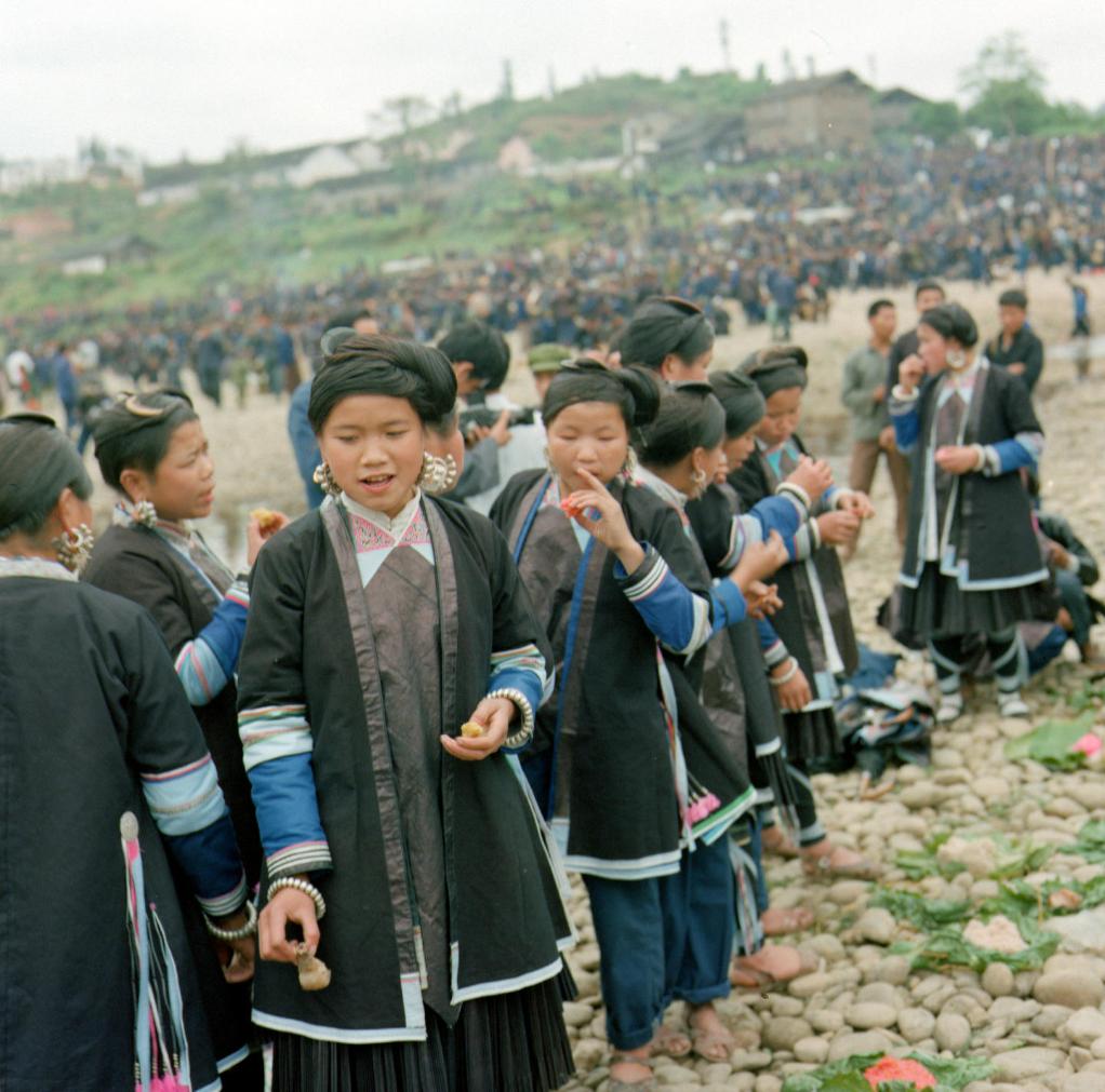 遠道而來的侗族姑娘,帶著自制的糯米飯和侗族最佳的菜肴——酸魚、酸肉,在中午時分,大家圍聚到一起,共進午餐(1981年8月4日發)。