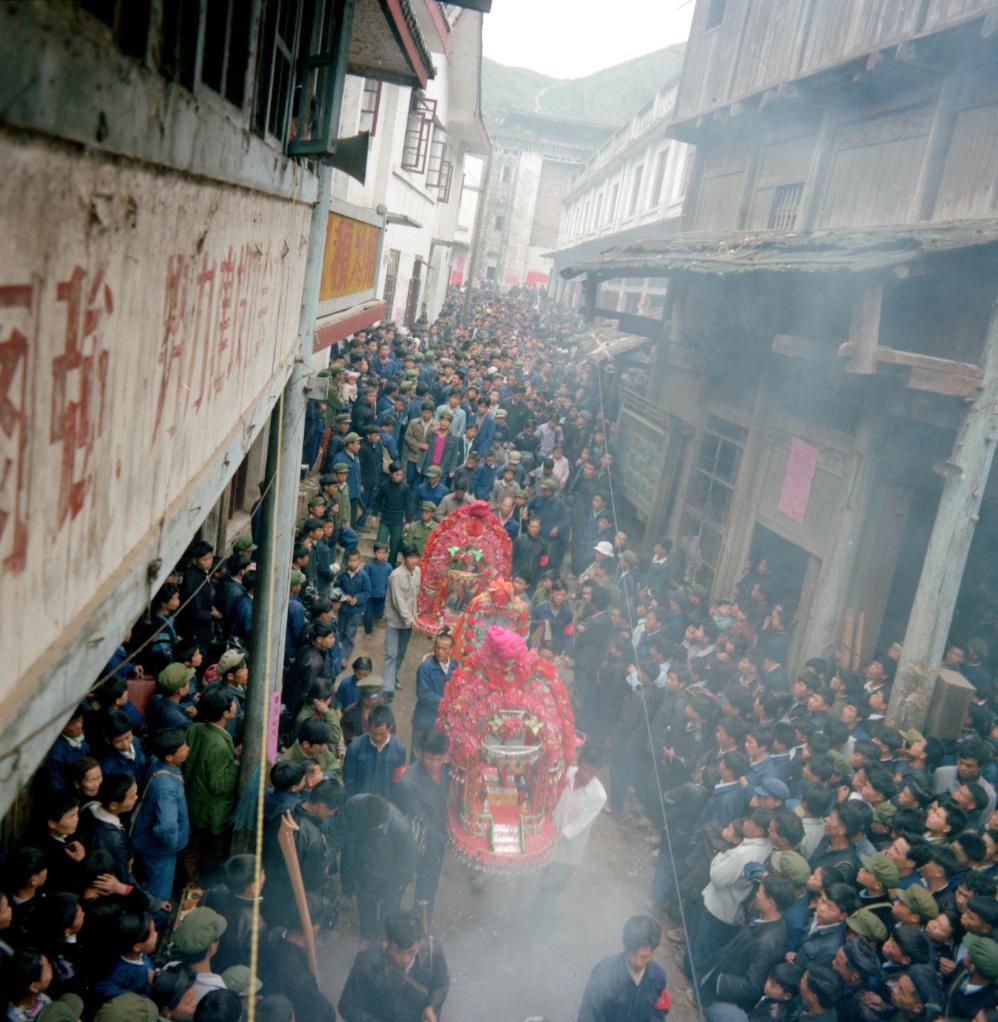 “花炮節”是桂北山區的鄰近的貴州、湖南兩省邊界的侗、苗、瑤、壯族人民一年一度的民族傳統盛會。每逢農歷三月初三舉行。這是儀仗隊在送花炮臺。(1981年8月4日發)