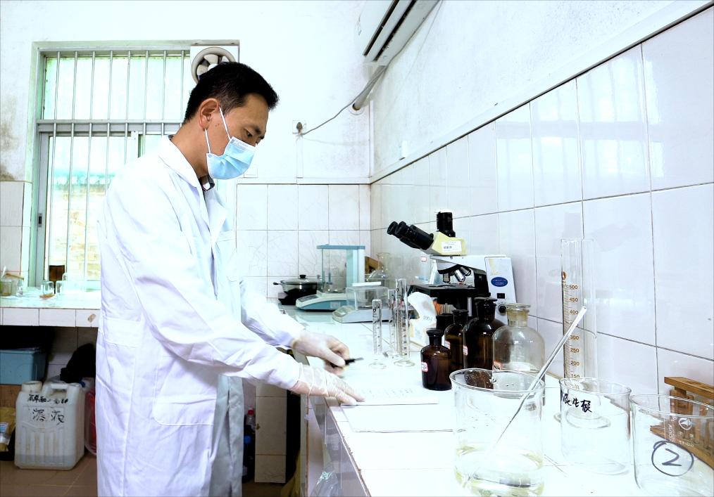 廣西國有東門林場良種基地辦主任王建忠在實驗室進行苗木培養基母液配制。(受訪者供圖)