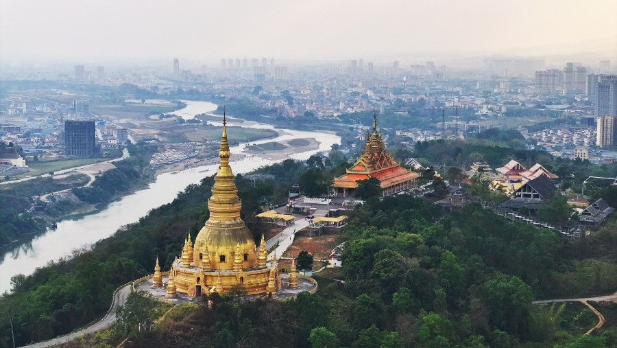 航拍瑞麗一隅(4月14日攝)。新華網發(李浩 攝)