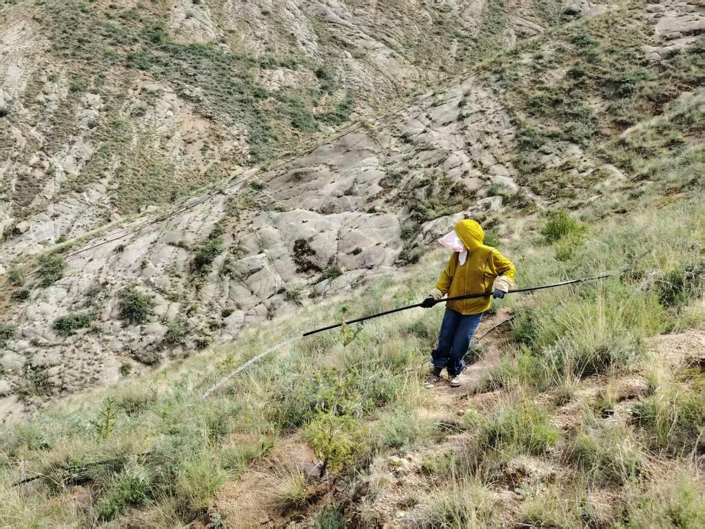 4年間,她的工作很單調,挖坑、種樹、澆水、養護;她的工作很辛苦,坑要挖在陡峭貧瘠的山體上,土要從遠方搬運過來,水最初只能靠人舉著管子一點點澆……寒來暑往,日復一日。