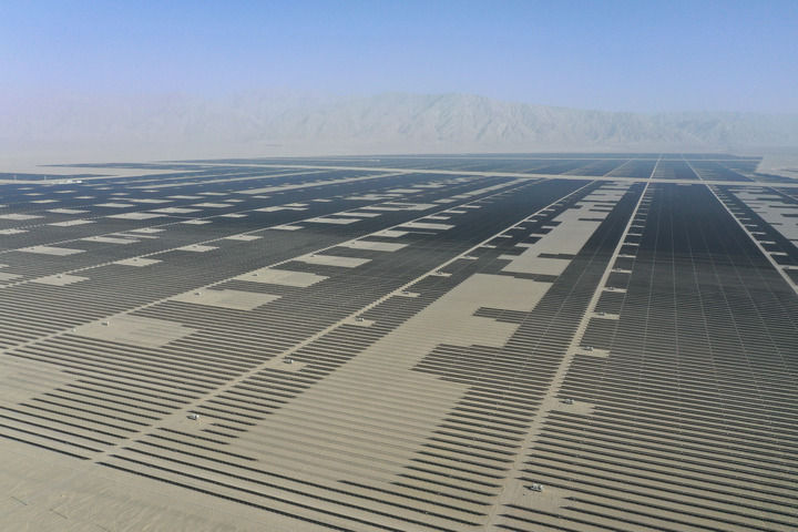 這是2025年6月26日拍攝的中國綠發新疆中綠電若羌400萬千瓦光伏項目(無人機照片)。新華社記者 丁磊 攝