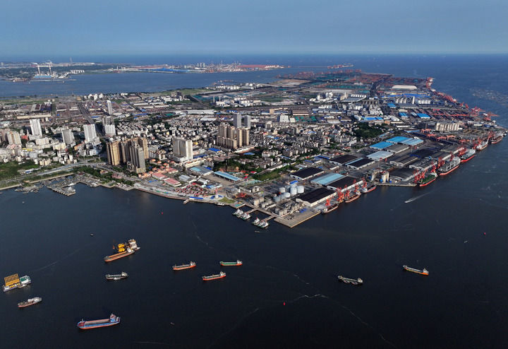 繁忙的防城港碼頭(7月6日攝,無人機照片)。新華社記者 黃孝邦 攝