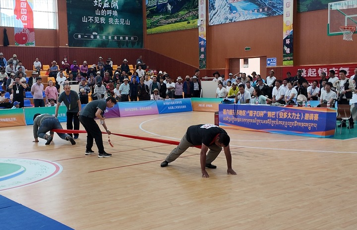 “則巴”一詞藏語意為“大力士”,高原上的男兒以奪得這一頭銜為榮。22日,第六屆安多地區“臘子口杯”則巴邀請賽在迭部縣體育健身中心開賽,這場為期3天的比賽共吸引了來自甘肅、青海、四川、西藏的242名選手參賽,比賽設置了三項特色競賽項目:舉皮袋、藏式摔跤和押加。
