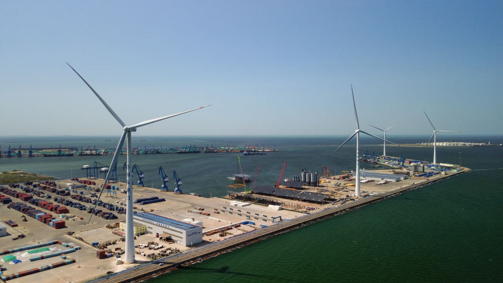 “4臺風力發電機一年可發電約7000萬千瓦時,足以覆蓋碼頭設備及??看暗挠秒娦枨?,冗余電量還能上網銷售?!鄙綎|省港口集團濰坊港有限公司黨支部書記、總經理孫超說,濰坊港已形成風、光、氫“多能互補”的用能結構,每年可節省標煤2.1萬噸,減少二氧化碳排放5.7萬噸。