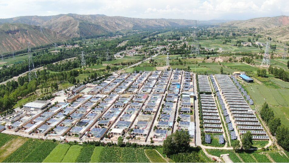 在搬遷后的班彥村,村民住房屋頂上安裝光伏面板。王艷 攝