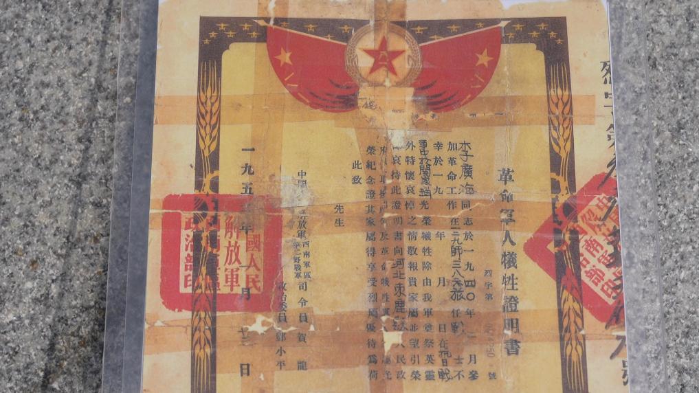 李廣海,1919年出生于河北辛集市中里廂鄉泊莊村。1940年2月參軍,成為八路軍第129師386旅12連戰士,同年10月,在武鄉縣關家垴抗日戰斗中壯烈犧牲。李廣海為獨子,因年幼參軍后離家未歸,堂兄弟遂將兒子李樹勛過繼于他,傳承這份對烈士的追思。