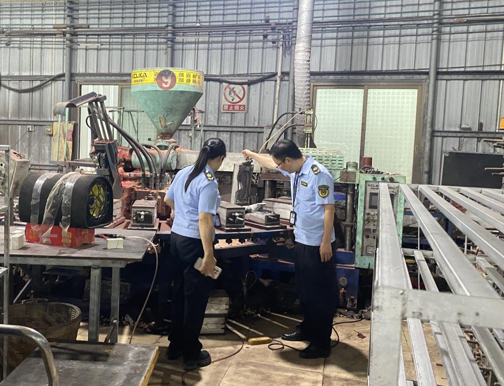 6月10日,吳川市場監管部門組織執法人員前往塑料鞋廠開展檢查。(受訪者供圖)
