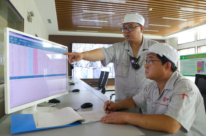 2025年7月22日,在山東梨花面業有限公司面粉制粉數字化中控室,工作人員通過數字化平臺數據分析,控制面粉加工。新華社發(石龍迪 攝)