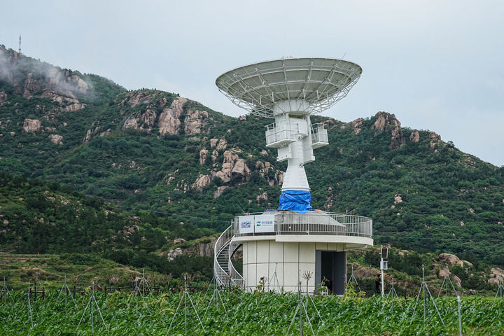 2025年7月22日拍攝的豎立在中科北斗數字農業示范基地項目內的衛星天線。這個項目位于山東省濟南市雪野街道,是集空天地網于一體的數字農業示范基地。新華社記者 朱崢 攝