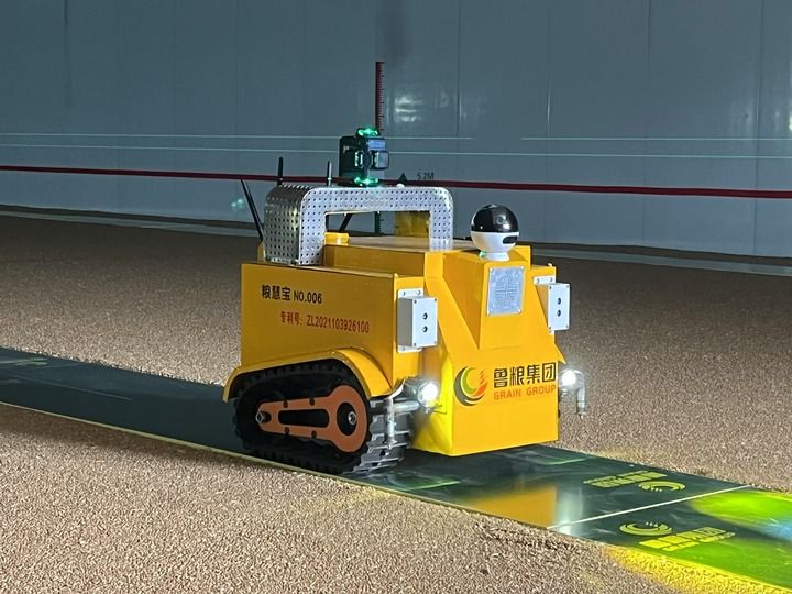 這是山東省農業集團研發的“糧慧寶”糧倉智能巡檢機器人在糧倉內工作(資料照片)。新華社發