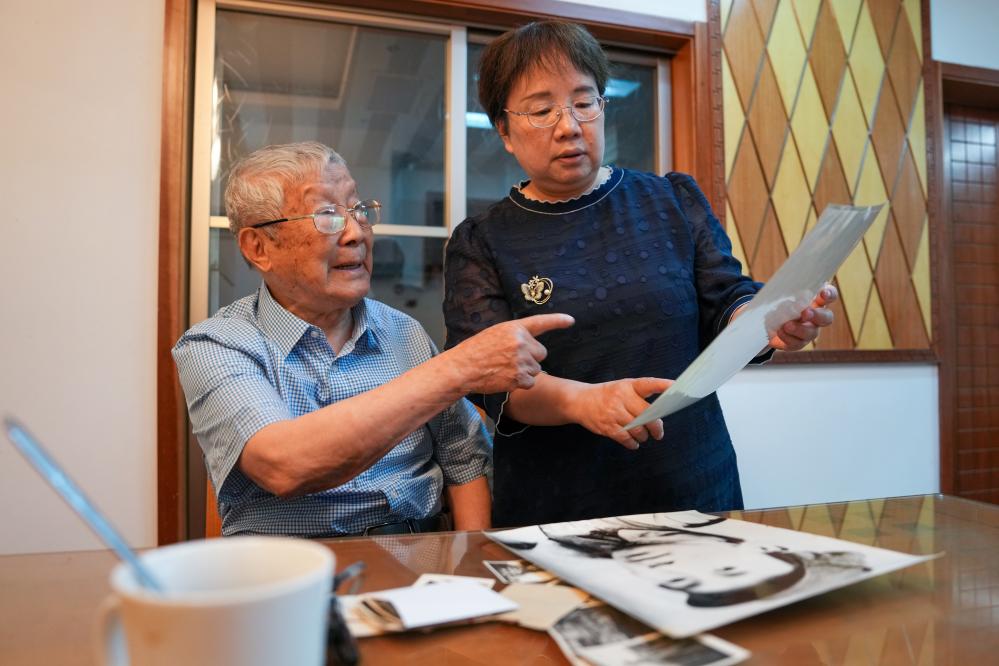 2025年7月11日,王生(左)與女兒王遠在家里翻看老照片。