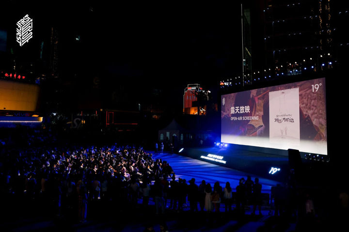 當天空漸漸染上夜色,電影的藝術時刻如期到來,銀幕點亮——放映前的宣傳片、嘉賓的登臺問候、樂隊的精彩演出……當露天電影院成為與城市對話的場域,在鍋莊廣場的水泥臺階上,從全國各地到來的嘉賓和影迷、游客、本地居民散落在每個角落。在這一時刻,他們與銀幕中的畫面連接在一起。