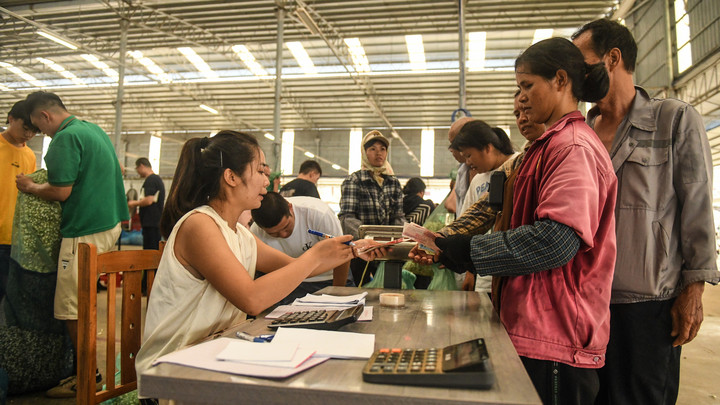 茶農在石井茉莉花交易市場上售賣當天采摘的茉莉花(7月31日攝)。