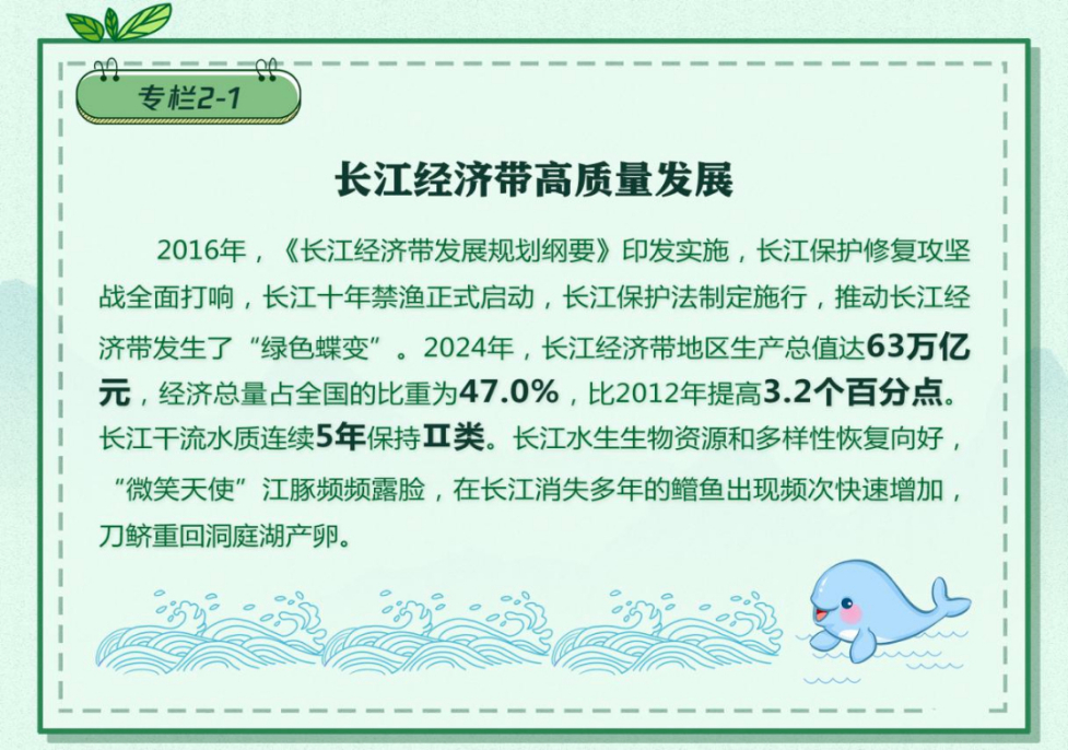 建設綠色發展高地,核心是深入踐行綠水青山就是金山銀山的理念,堅持生態優先、綠色發展,推動實現發展和保護的協調統一。京津冀協同發展11年,PM2.5降幅均超六成,濕地面積持續減少態勢得到扭轉。同時,經濟總量連跨6個萬億元臺階,2024年達11.5萬億元。長江流域2024年水質優良斷面比例達到98.6%,長江經濟帶萬元GDP用水量逐年下降,地區生產總值63萬億元,同比增長5.4%,對全國經濟增長的貢獻率為50.1%。長三角地區生態質量指數高于全國平均水平,新能源汽車、光伏、鋰電池、節能環保等戰略性新興產業集群加快融合發展?;浉郯拇鬄硡^積極推進美麗中國先行區建設,區域生態環境質量和綠色發展水平走在全國前列,其中廣東2024年PM2.5平均濃度為20.6微克每立方米,連續5年穩定優于世界衛生組織過渡期第二階段目標值,新能源產業集群營收突破萬億元,高質量發展的綠色底色更加鮮明。