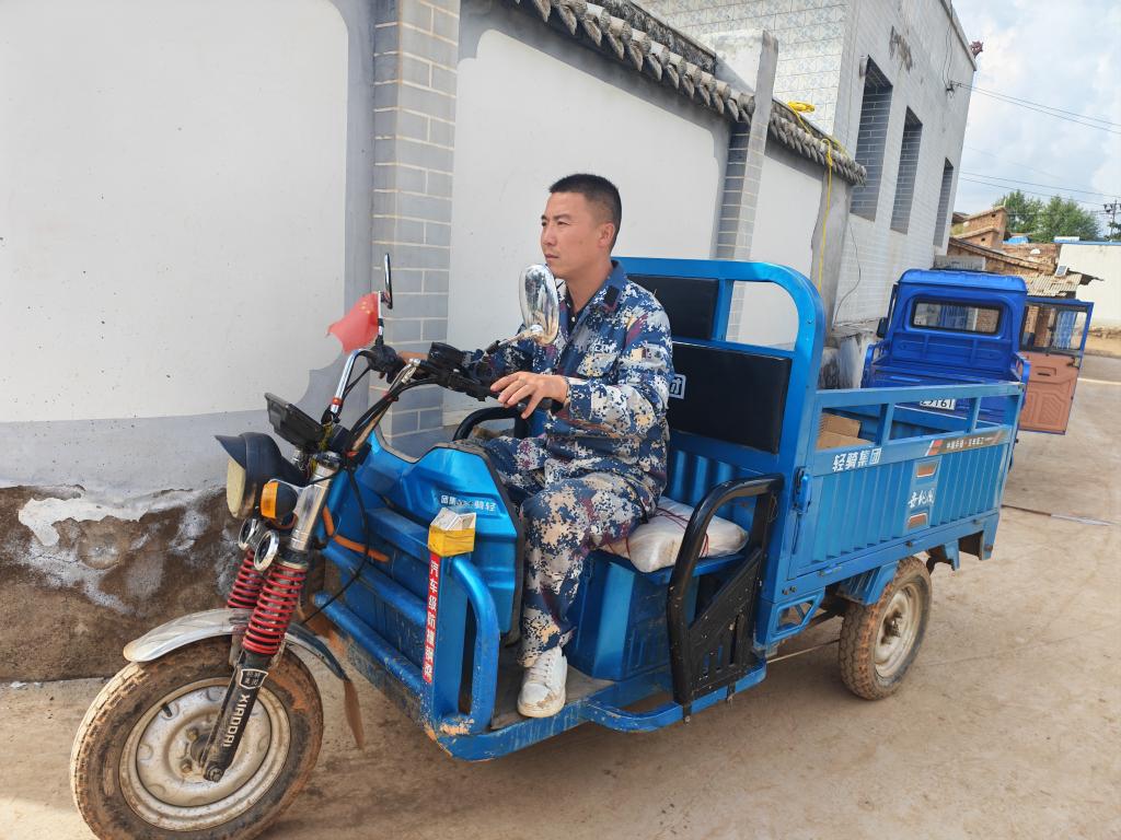 8月10日,王棟駕駛農用車準備運送物資。新華社記者 崔翰超 攝