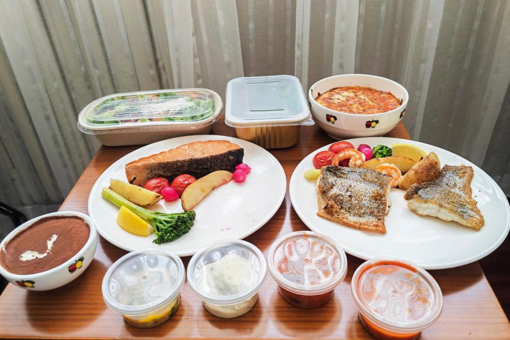 在吉林長春,記者點單一份輕食外賣配送的菜品、醬料和包裝盒(8月13日攝)。