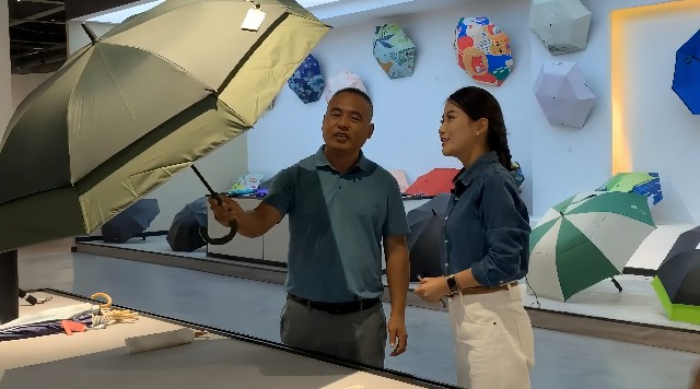 鄲城縣融媒體中心楊力帆在傘業產業園采訪