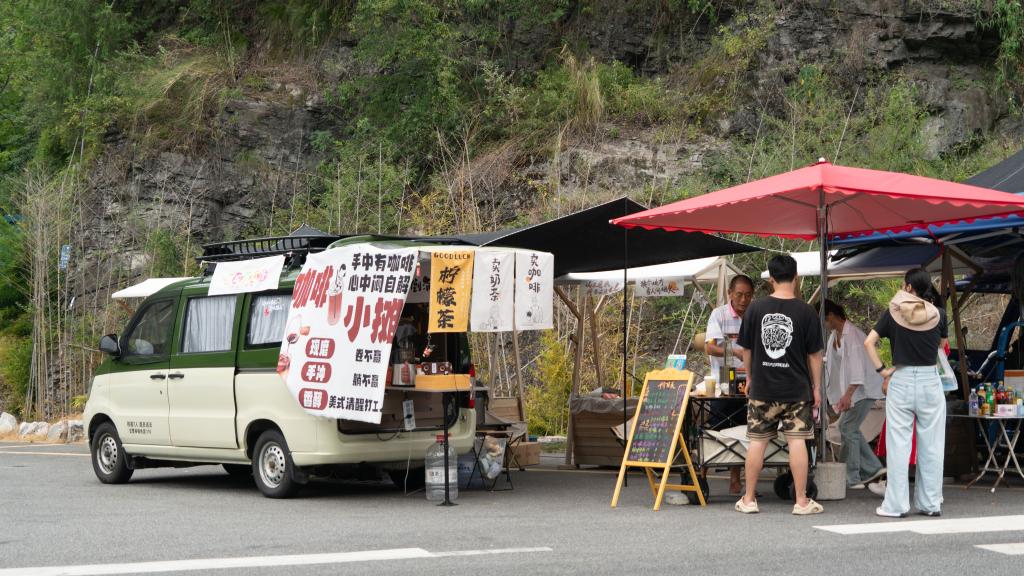 “車開到這里就不想走了!”40多歲的旅居愛好者彭送行駛到G348,已在星空停車區“安營扎寨”了40多個日夜。白天,他以青山流云為幕,將愛車變為咖啡小店,為旅客提供小憩處所。夜晚,他以徐徐江風為榻,與架著機器拍攝星空的攝影愛好者暢聊。