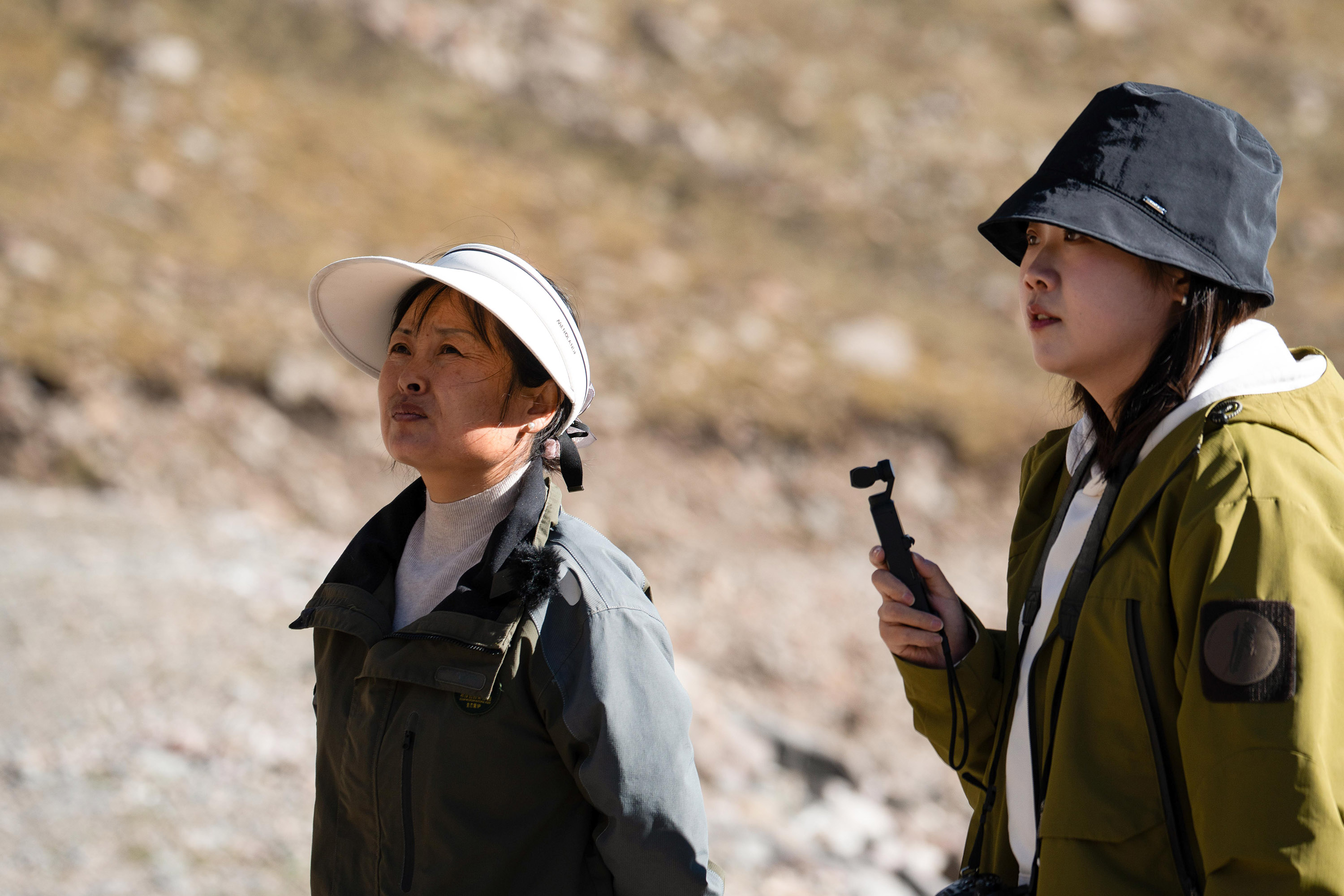 王雯靜在祁連山腹地,記者(右一)跟隨生態管護員安裝紅外相機