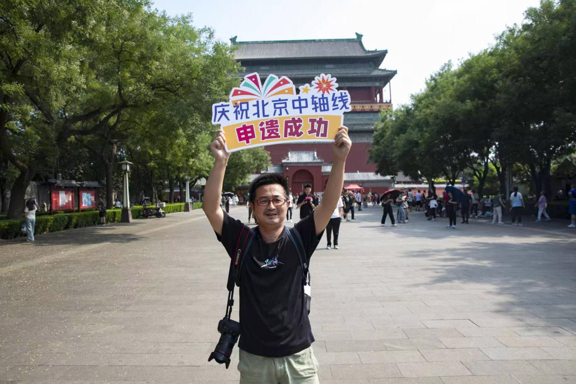 2024年7月27日,在北京鐘鼓樓廣場采訪慶祝北京中軸線申遺成功