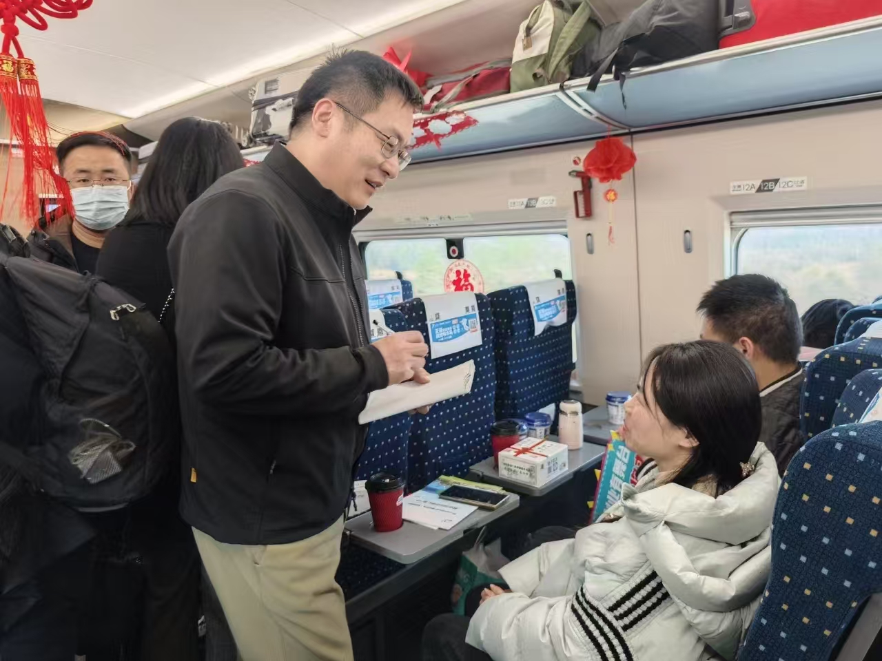 孫忠法在廣州到湖北荊門的返鄉務工專列上采訪.