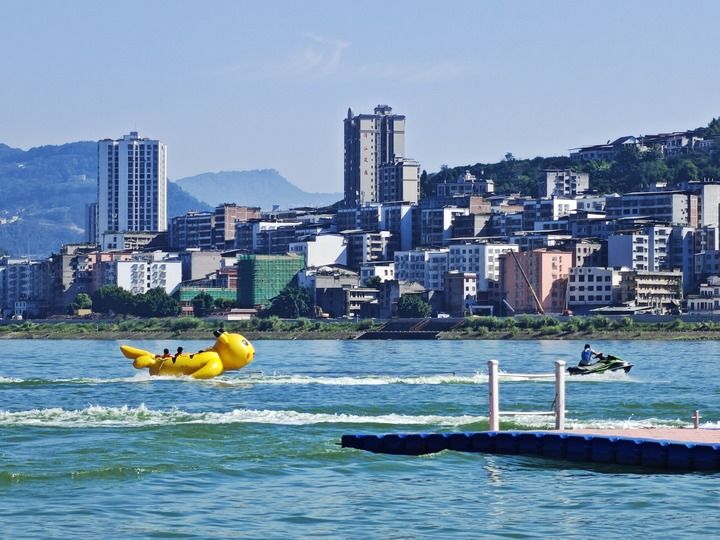 8月14日,在重慶市開州區漢豐湖水上運動中心,市民正在游玩。新華社記者 蔣聲雄 攝