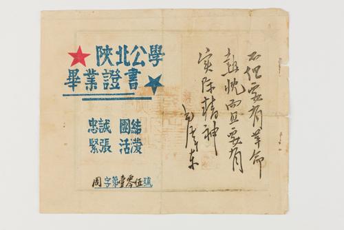 中共一大紀念館館藏的陜北公學畢業證書。中共一大紀念館供圖