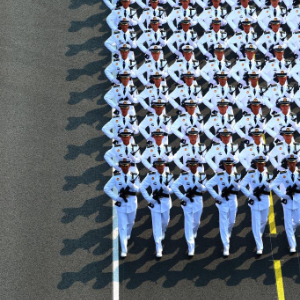 分列式開始后,高點視角的優勢顯露無遺,我們能夠捕捉到地面攝影師無法拍到的宏大全景。戰士昂首闊步,戰旗迎風招展,戰車浩蕩前行,戰機碧空翱翔,在鏡頭里匯聚成一幅波瀾壯闊的畫卷。