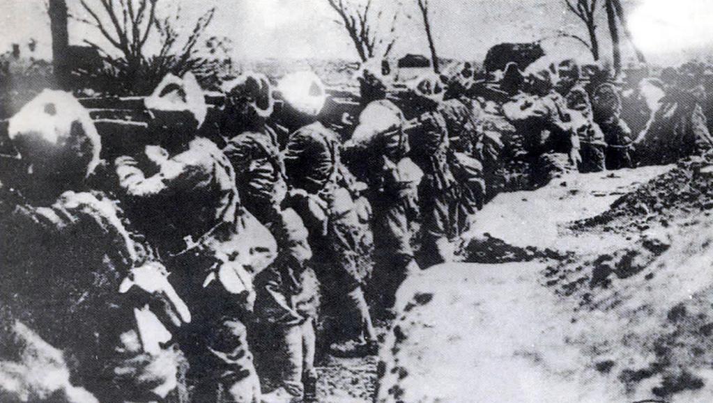 1931年9月18日,日本帝國主義蓄意在中國制造了震驚中外的九一八事變,進而侵占了中國東北地區。這是遼西義勇軍老梯子隊在陣地上抵抗日軍進攻。新華社發