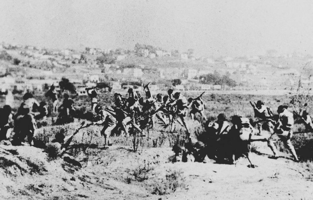 1937年8月13日,淞滬會戰爆發。這是中國軍隊在閘北八字橋攻擊日軍。新華社發