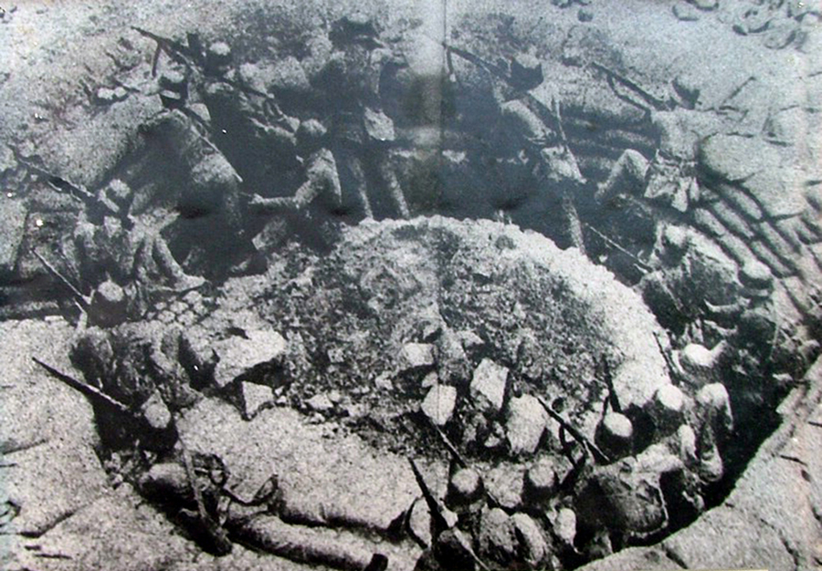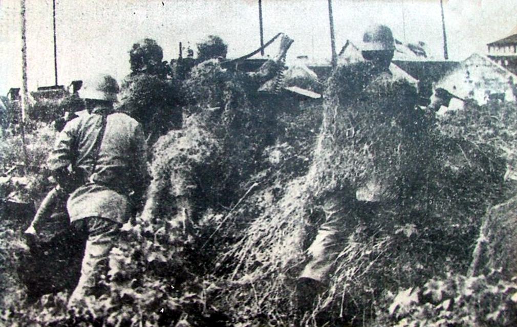 1937年8月13日至11月12日,持續三個月的淞滬會戰粉碎了日本軍國主義者速戰速決的迷夢。這是中國軍隊88師在上海閘北的環形工事里同日軍巷戰。新華社發
