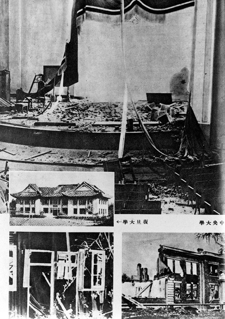 1937年8月13日,日本軍隊攻占上海時,復旦大學等文化機關慘遭破壞。新華社發