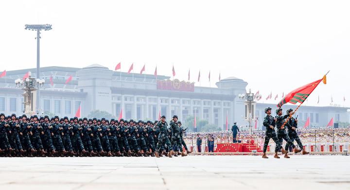 9月3日,紀念中國人民抗日戰爭暨世界反法西斯戰爭勝利80周年大會在北京隆重舉行。這是武警部隊方隊接受檢閱。新華社記者 李明 攝