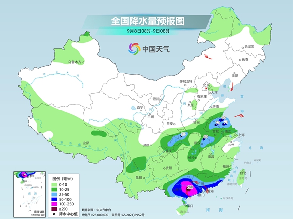 中央氣象臺預計,今天,廣東中南部、廣西中東部等地部分地區有大到暴雨,其中,廣西東部、廣東西南部等地部分地區有大暴雨,局地有特大暴雨;江蘇北部、安徽北部和西南部、重慶東北部、湖北西部和東北部等地部分地區有大雨,局地暴雨。