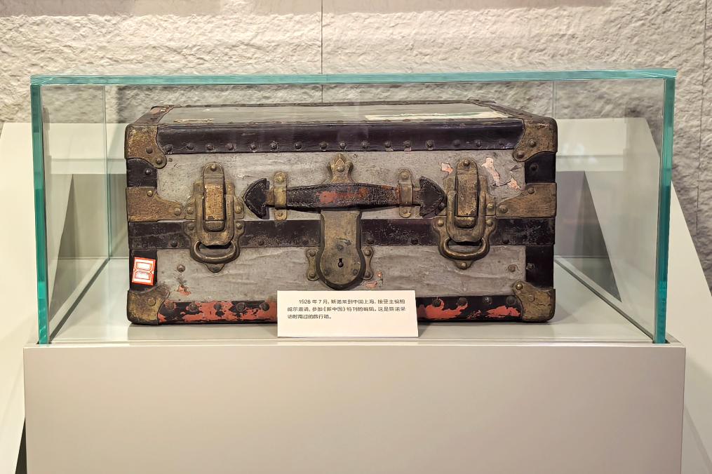 這是展覽展出的斯諾采訪時用過的旅行箱。新華社記者 楊湛菲 攝