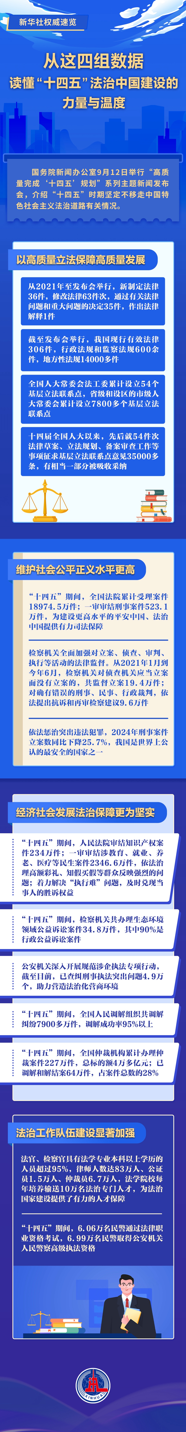 新華社北京9月12日電 題:為書寫“兩大奇跡”新篇章提供有力保障——“十四五”時期法治中國建設取得突破性進展、歷史性成就