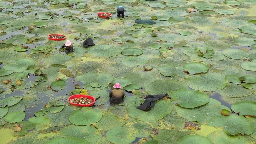眼下,江蘇省泰州市姜堰區顧高鎮申俞村芡實進入成熟期,種植戶正抓緊采摘成熟的頭茬芡實。