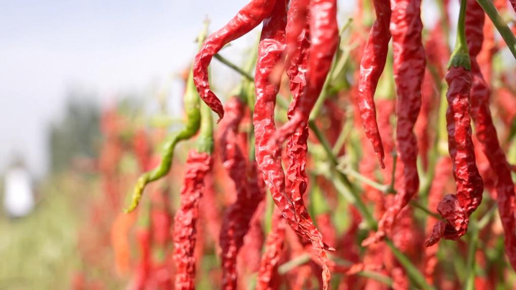 眼下,新疆巴音郭楞蒙古自治州焉耆縣的14萬畝工業辣椒進入采收季,種植戶搶抓晴好天氣采摘辣椒。